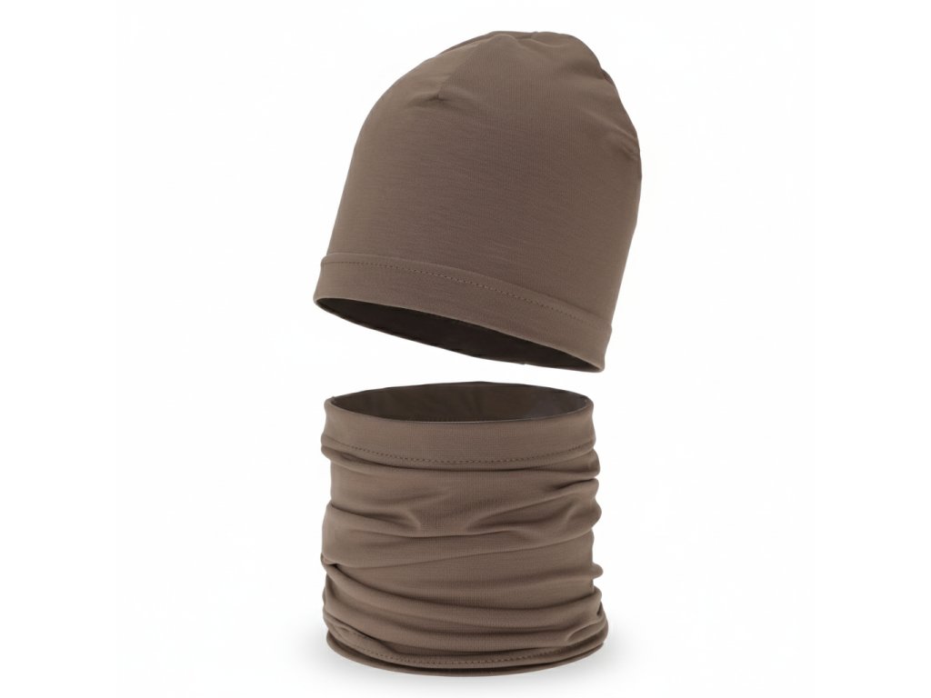 Nákrčník (Tunel): Praktický tunelový šál v rovnakej farbe, ktorý sa jednoducho pretiahne cez hlavu a perfektne chráni krk pred vetrom a chladom bez nutnosti viazania.