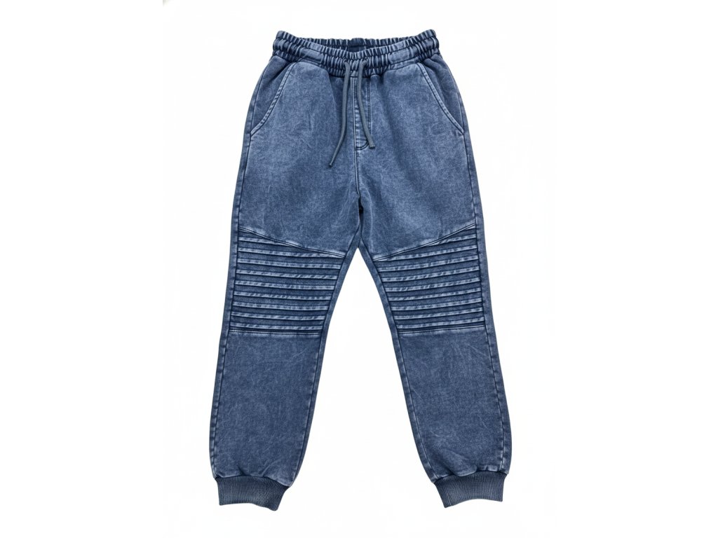 Biker Detaily: Na kolenách sú horizontálne prešívané/vrúbkované panely, ktoré imitujú štýl motorkárskych nohavíc a dodávajú teplákom moderný look.