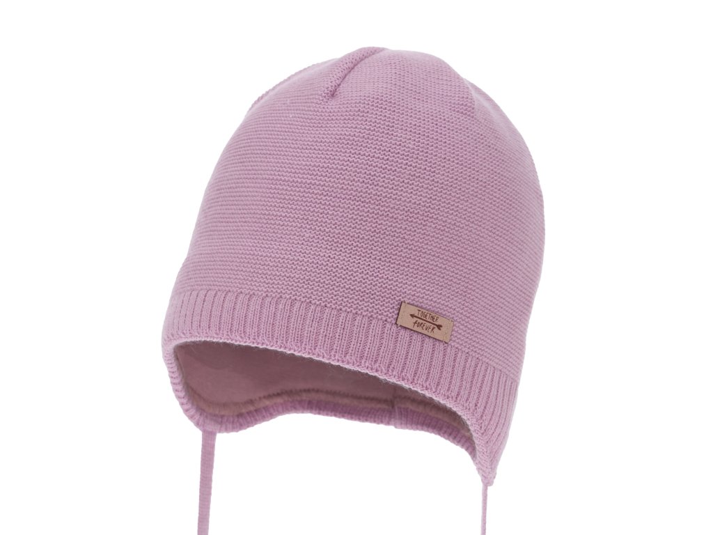 💜 Dievčenská čiapka na zaväzovanie – Spletená Vresová/Levanduľová