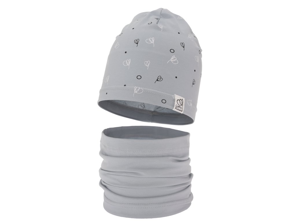 🩶 Dievčenský set Čiapka a Nákrčník (Tunel) – Sivé kvietky