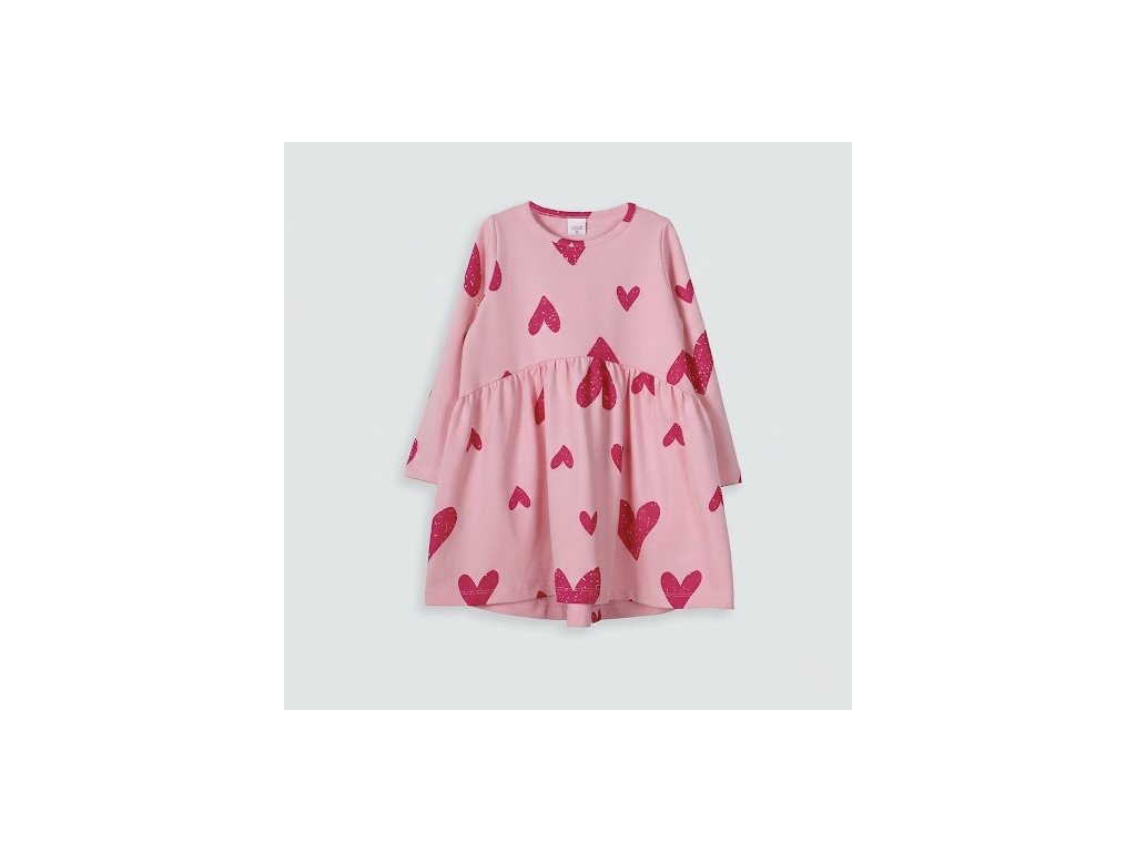 Hravý a nežný dizajn: Sýtoružové srdiečka na svetloružovom podklade dodávajú šatám veselý a dievčenský šmrnc.