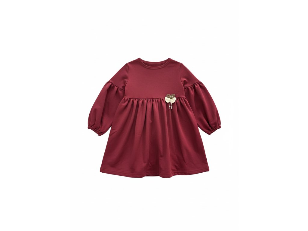🌹 Dievčenské Šaty – Balónové Rukávy a Kvetinový Detail (Bordová)
