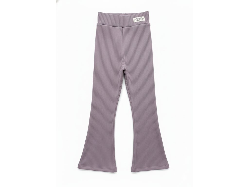 Tieto trendy a pohodlné legíny v sivo-fialovom (taupe/mauve) odtieni sú ideálne pre malé parádnice, ktoré milujú štýl a voľnosť pohybu. Strih nohavíc sa mierne rozširuje od kolien nadol, čím vytvára moderný zvonový efekt.